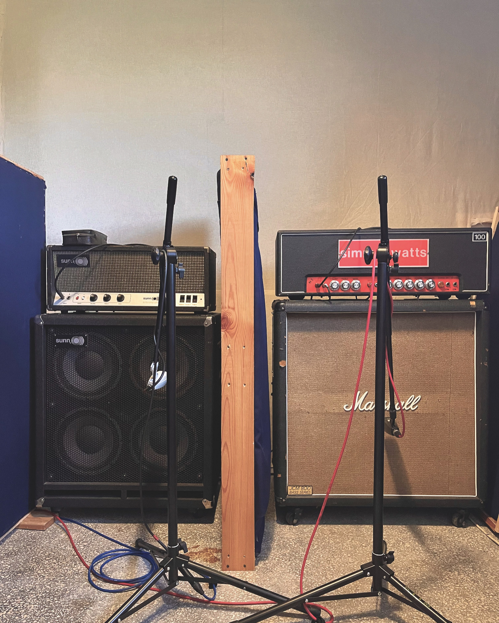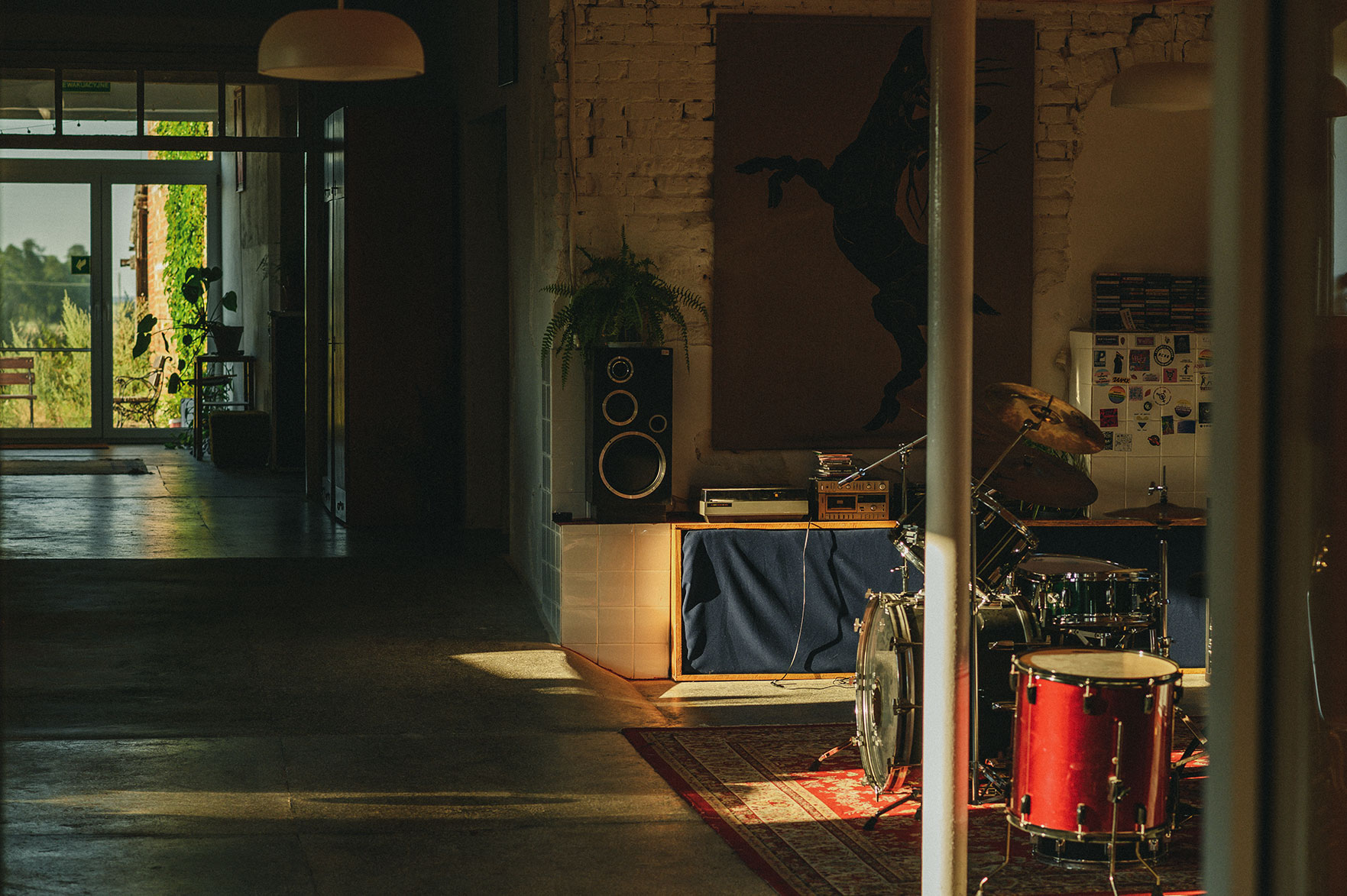 Karolina: Studio Cierpienie jest tam, gdzie nagrywa Marcel. Kiedyś to były salki prób i strych jego domu rodzinnego w Smarzykowie. Wtedy trzeba było przeciskać się przez sprzęt i wysoko podnosić nogi żeby przejść. Miał 1,5-metrowe kable, 4-kanałową kartę Akai, kilka własnych i kilka pożyczonych mikrofonów. Ciężko było oddać w nagraniu brzmienie, które chciał nadać tej muzyce i ciężko mu się pracowało. Chciał zrobić studio, a ja w to poszłam. Przez kilka lat nasłuchałam się o tym. Ze strychu przenieśliśmy się do budynku byłej owczarni w gospodarstwie. W czasie pandemii zrobiliśmy remont DIY. Krzysiu Kłos zaprojektował do tego adaptację akustyczną, która dała niesamowity efekt, bo dźwięk przestał się kotłować w kolebkach sklepienia, tylko rozchodzi się w ładnym pogłosie